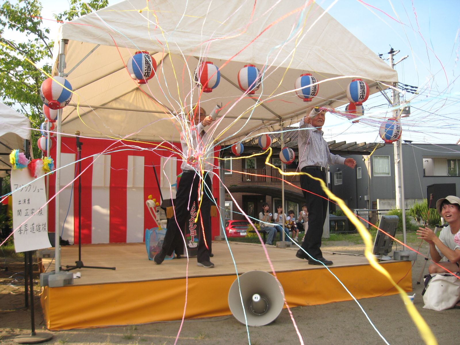 催しは昨年好評だった小中学生がメンバーのSEIWA DANCE CLUBのヒップホップダンス、町内在住の関正宅氏、峯岸道雄氏によるマジックショー、宮城県内を中心に活動しているプロ歌手峰竜二氏、広瀬優氏の歌謡ショー、子供たちによるミニ花火、外れなしの抽選会。今年の夏は特に暑く当日も暑い中の開催でしたが、大勢の子供、大人が参加して楽しい時間を過ごしました。テント張りなどの会場の設営、会の運営にご協力いただきました皆さん、お疲れ様でした。ありがとうございました。なお、中山商店街の「ダブルエッグ様」「みさと様」、「明青会様」よりご祝儀を頂戴しました。ありがとうございました。