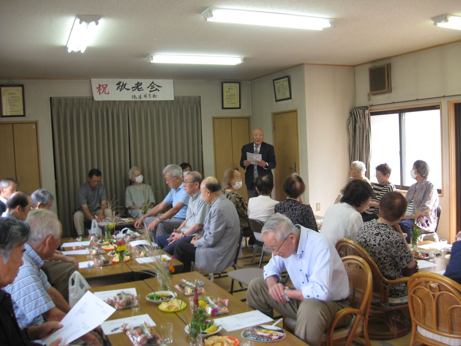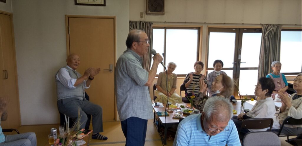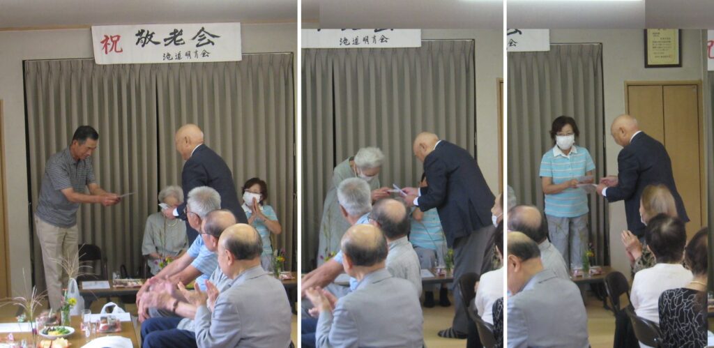 明青会懇親会で敬老を祝う 掲載日:2025/10/01 開催日 2025/09/15 イベント 明青会敬老を祝う会 投稿者 富樫貞雄 撮影者 富樫貞雄 拍手を贈る 上島氏の音頭で乾杯 阿部会長の開会あいさつ 喜寿のお祝い 三氏 髙橋町内会長の祝辞 9月15日(月)滝道集会所に於いて、明青会懇親会が開催されました。 「適度な運動とバランスの良い食事で100歳まで長生きしましょう」と阿部会長挨拶。敬老の日に合わせて本年中に喜寿となられる、村田猛氏、増沢信子氏、細貝悦代氏の3名がお祝いを受けました。総勢26名参加でした。 拍手を贈る 投稿ナビゲーション たきみち夏祭り開催とびの子祭り